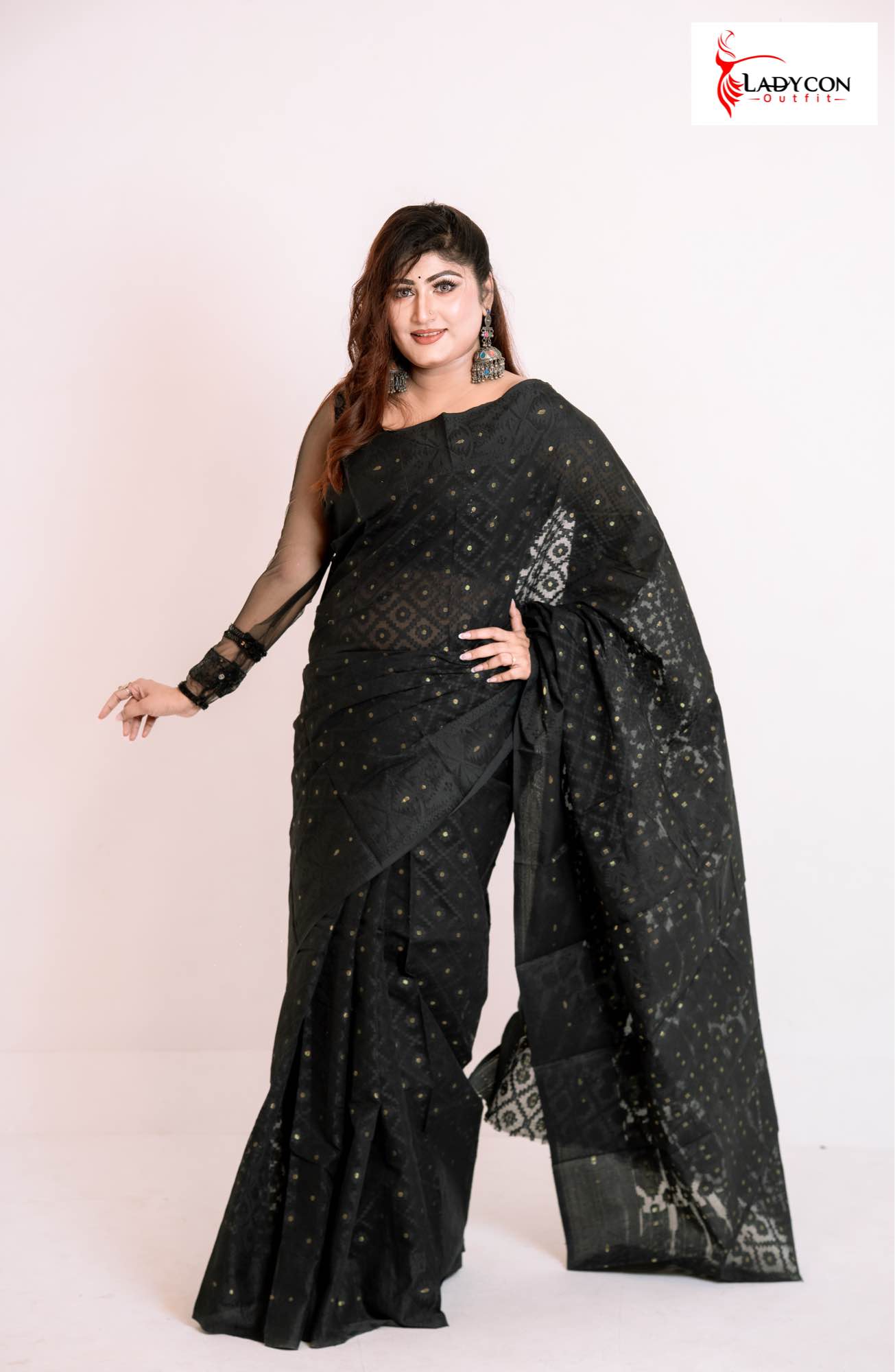 চমৎকার কালো জর্জেট শাড়ি, সূক্ষ্ম কালো স্টোন ও এমব্রয়ডারি কাজ করা। হালকা, আরামদায়ক এবং স্টাইলিশ — যেকোনো পার্টি বা অনুষ্ঠানের জন্য একদম পারফেক্ট। সঙ্গে রয়েছে ম্যাচিং ব্লাউজ পিস।