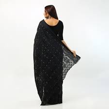 কালো শাড়ি জর্জেট মেটেরিয়াল কালো স্টোনের কারচুপি কাজের (Code J001)